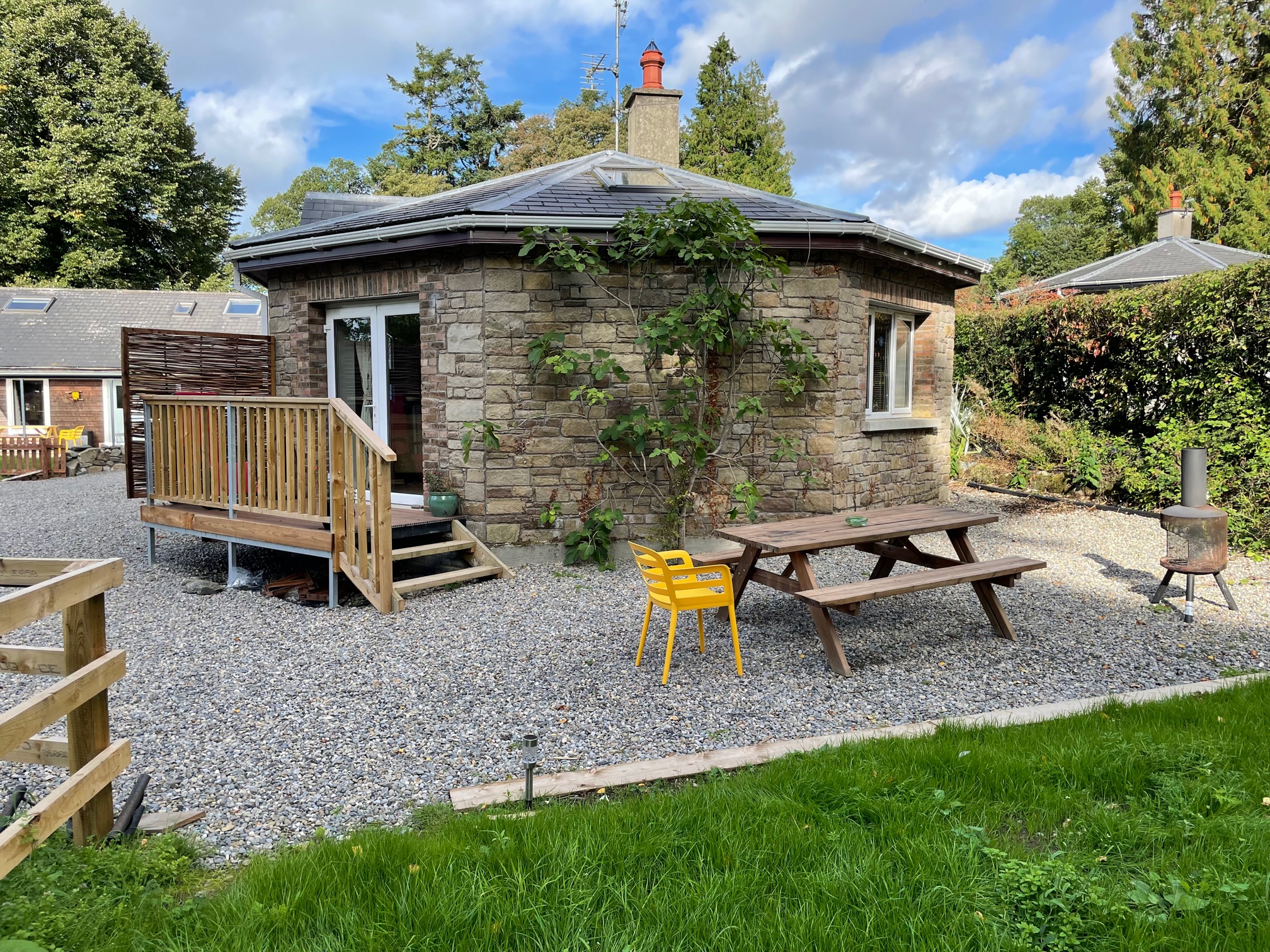 Large private outdoor area with fire pit, and BBQ. Perfect for summer living or cosey campfires and marshmallows all year round.