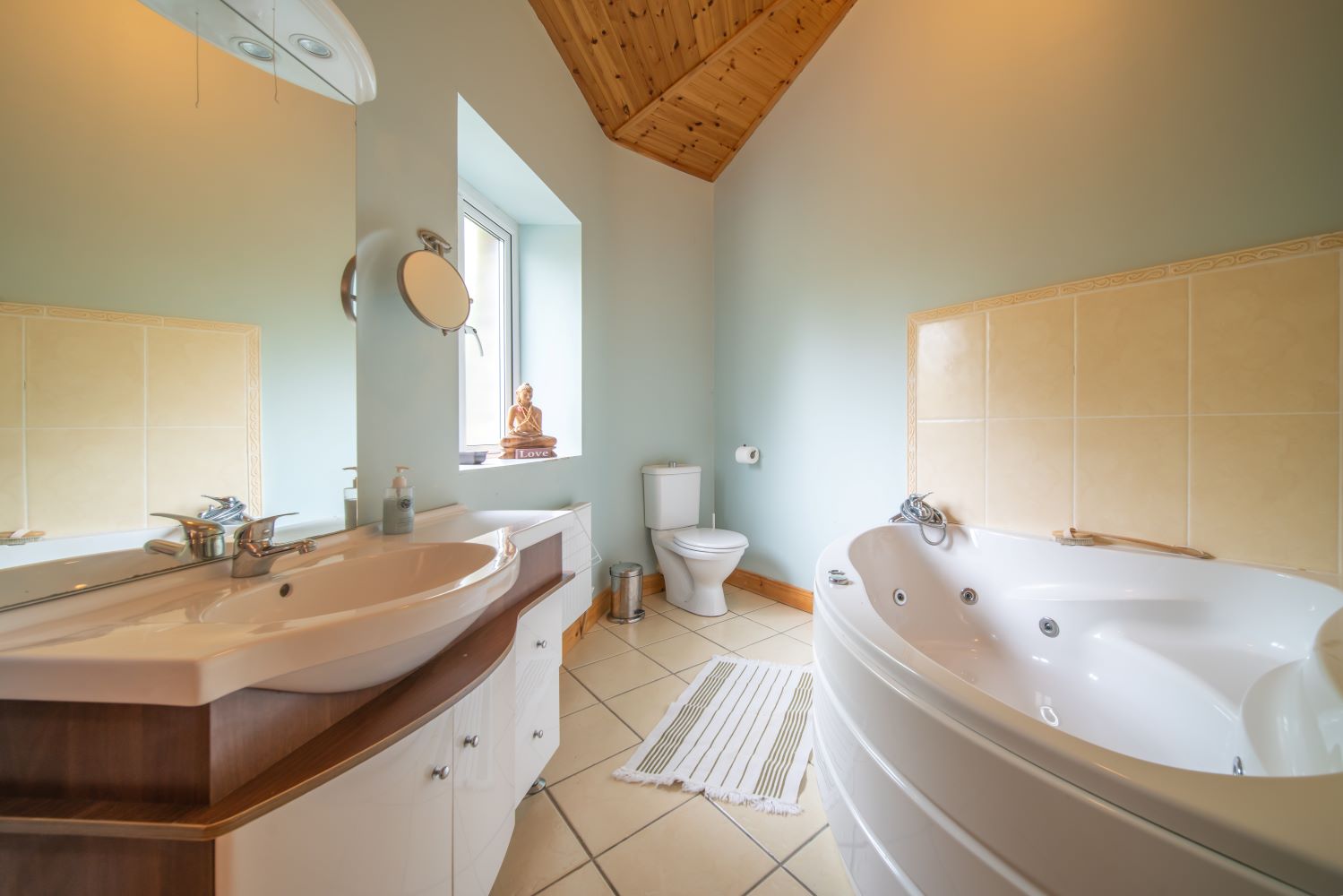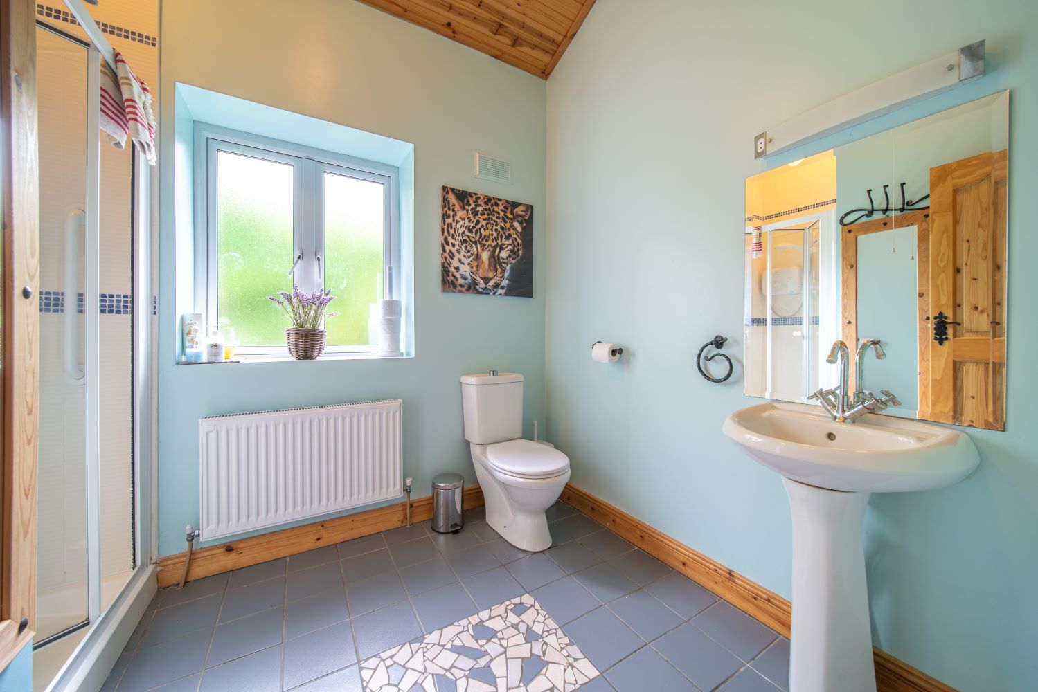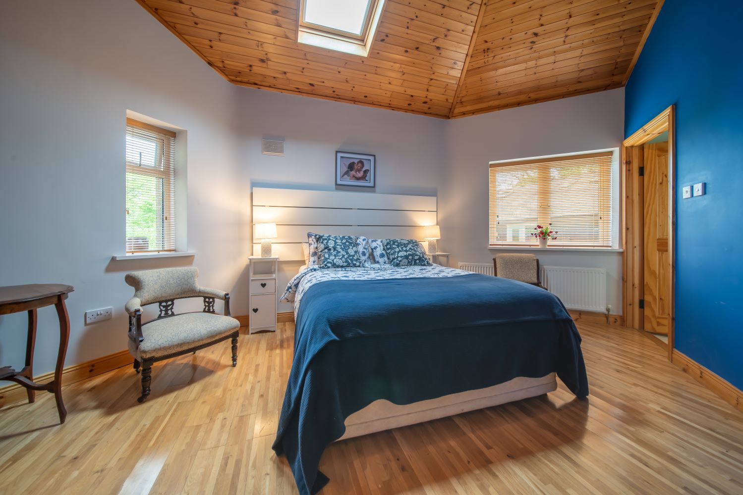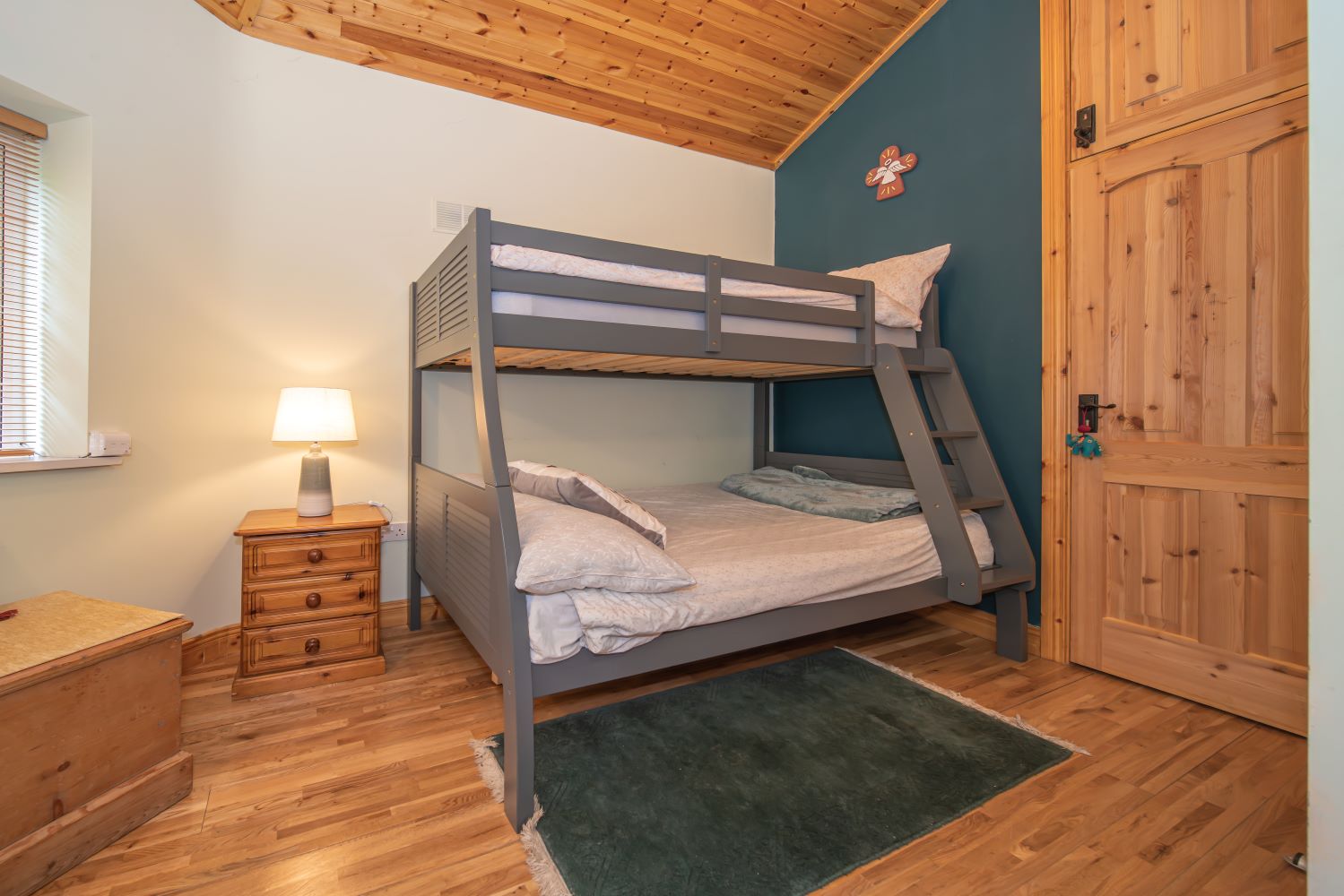 Nirvana cottage includes an ensuite double bedroom and a twin bedroom with bunks as well as a standalone bathroom. There is also a pull-out camp bed available on request.