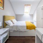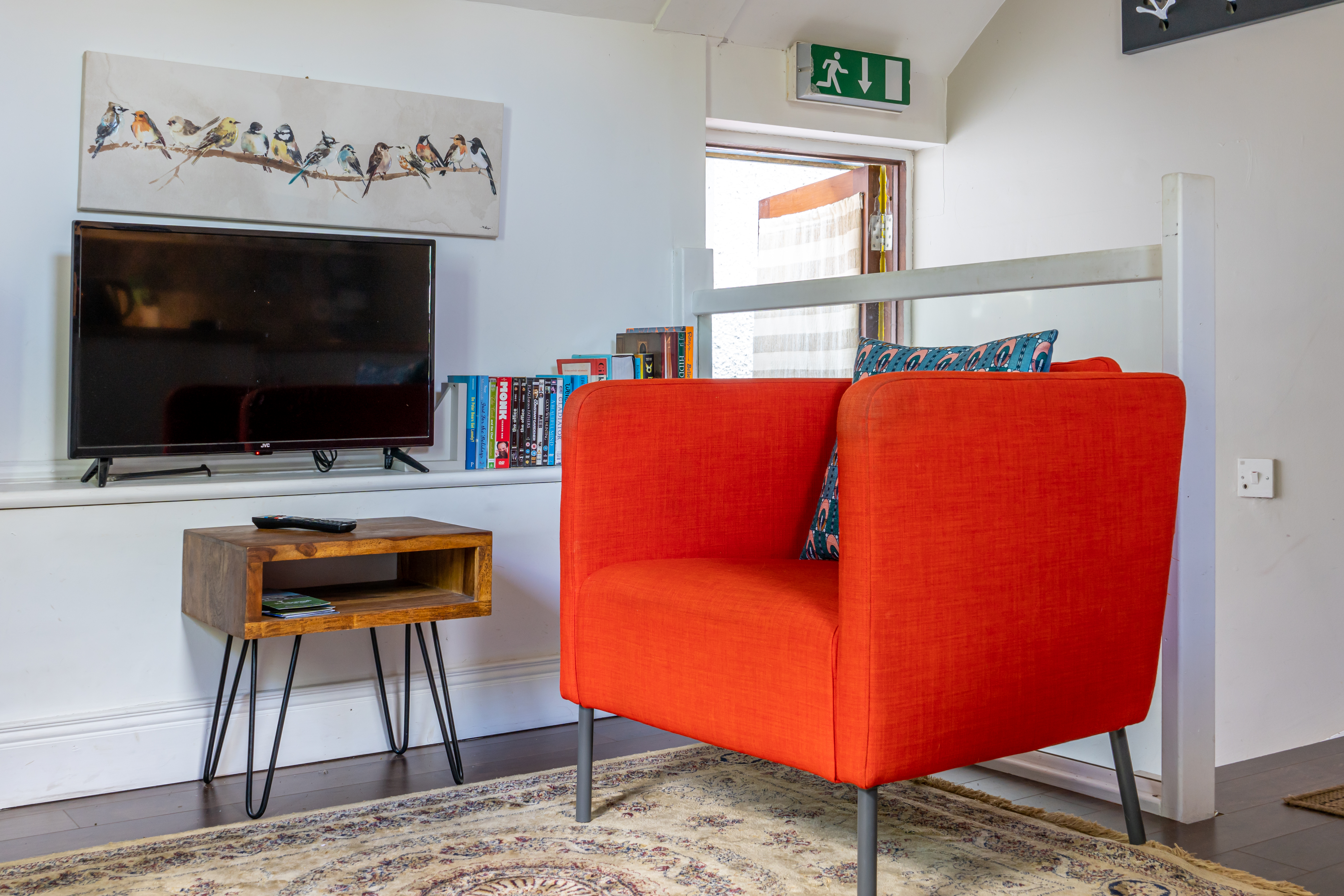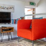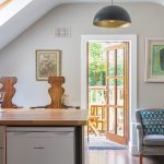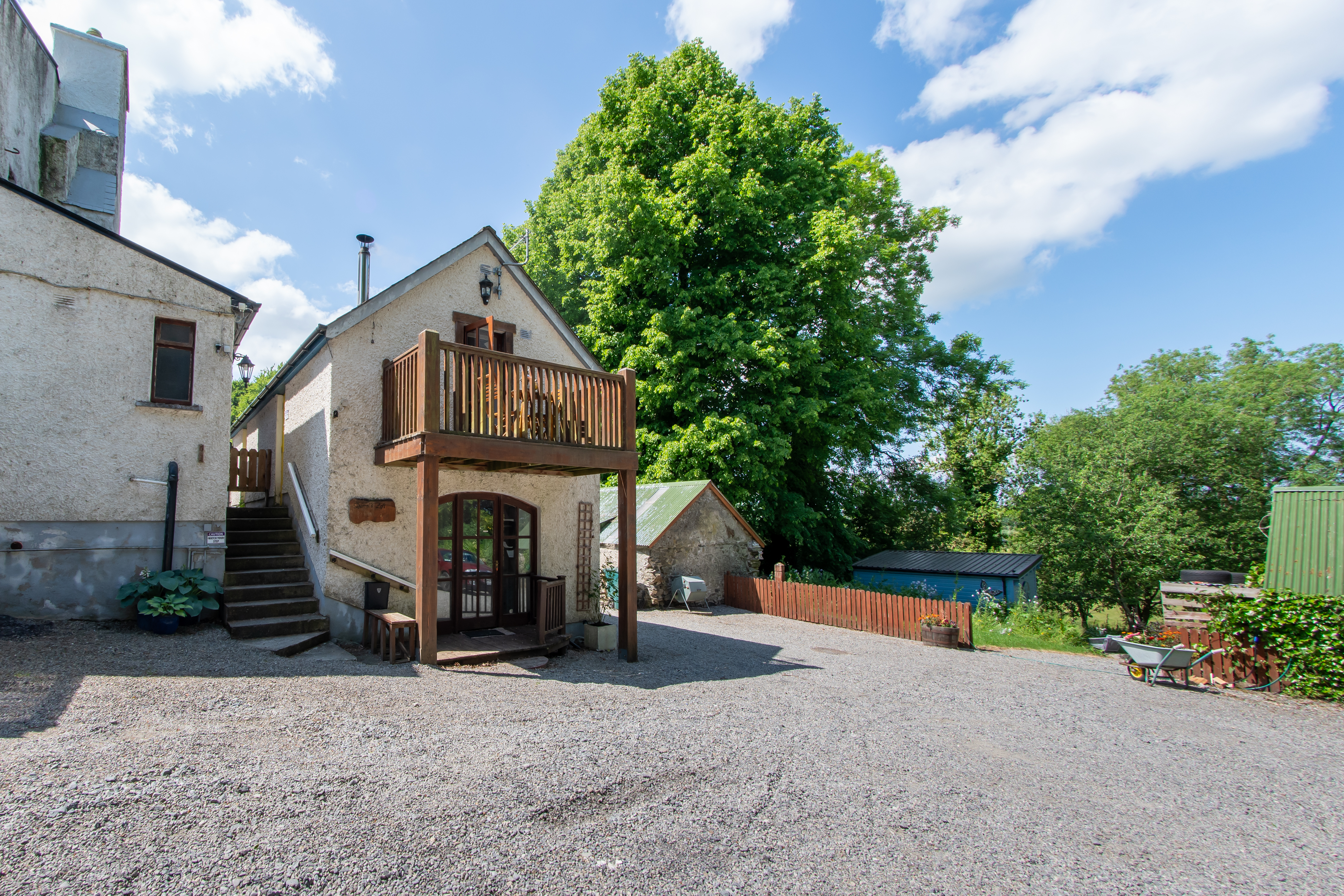 The Squirrel’s loft apartment includes an ensuite double bedroom and an open plan kitchen/dining living space with a large balcony and cosy wood-burning stove.
